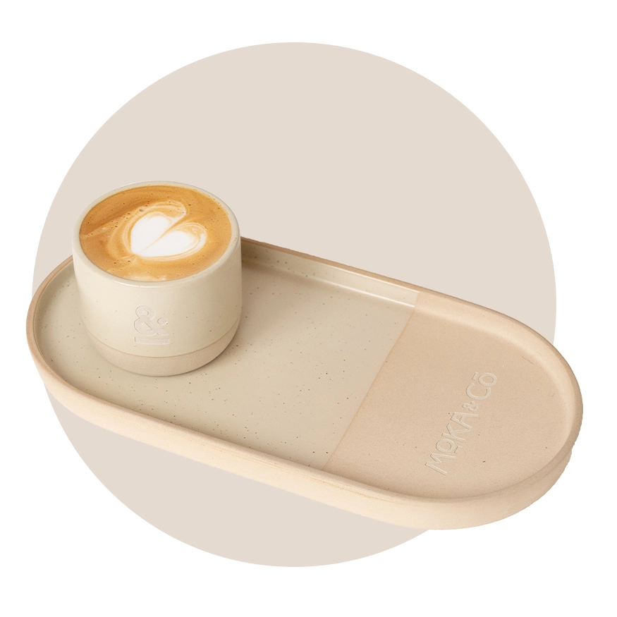 A perfectly balanced cortado made with a one-to-one ratio of bold espresso and warm milk, highlighting the smooth, refined flavor of our organic, ethically sourced Yemeni beans.